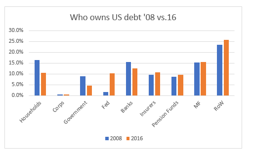 - I do not have the data for the shadow banking monetary liquidity globally, but looking at data for the US, shadow banking liquidity has fallen by about $5tn while the Fedâs balance sheet has increased by about $4tn since the 2008 crisis.