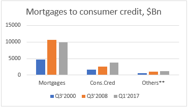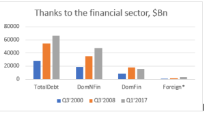 And the third problem was that in the period between the Dotcom crash and 2008 the ‘safe’ collateral that forms the base of shadow banking liquidity transformation was mostly repackaged private debt in the form of (sub-prime) mortgage back securities.