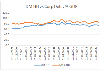 It is no surprise then that we see the emergence of cryptocurrencies. They are the new fake safe private assets in a system starved of money and with real incomes still barely rising. With a total market capitalization of all cryptocurrencies of around $150bn, they are just about 10% of the US physical notes and coins in circulation, and only above 1% of US M2, so not an immediate and systematic danger to the monetary system. But unlike subprime mortgages, their digital and decentralized nature would allow them to spread very fast if the circumstances allow. And just like shadow banking liquidity, they are difficult to follow, let alone measure. Therefore, it is imperative for central banks and regulators not to get too complacent yet again.