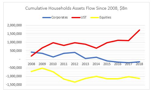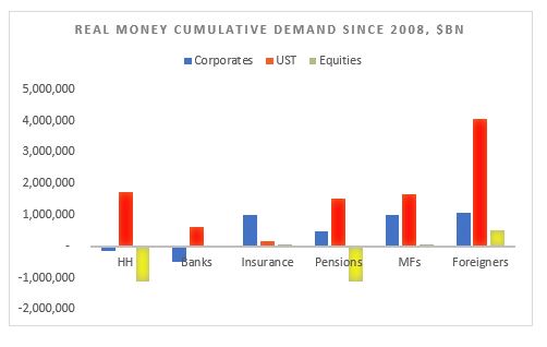 Households have massively deleveraged: sold about $1Tn of US equities and bought about $2Tn of USTs. The have also marginally divested from corporate bonds.