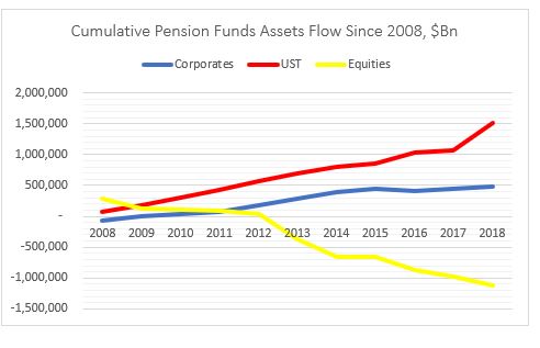 Mix bag for pension funds with a slight deleveraging: bought $0.5Tn
