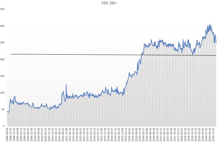 FRP has a bit more to go on the downside but I think it will struggle to break $200Bn, probably settle around $215Bn.