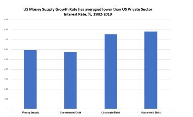 Over the last four decades, US money supply has not only not grown enough, on average, to stimulate US economic growth, but has been, in fact, even below the overall interest rate of the economy. Needless to say, this is not an environment that can last for a long time. It is surprising it did go on for so long.