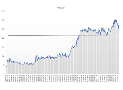 FRP has a bit more to go on the downside but I think it will struggle to break $200Bn, and it might settle around $215Bn. TGA and FRP declining should help liquidity even if Fed’s balance sheet does not increase. If the decline in the demand for repos is less than Fed’s securities purchases, bank reserves are likely to go up: this should help liquidity overall. Otherwise, it depends on the net effect of the change in all autonomous factors.