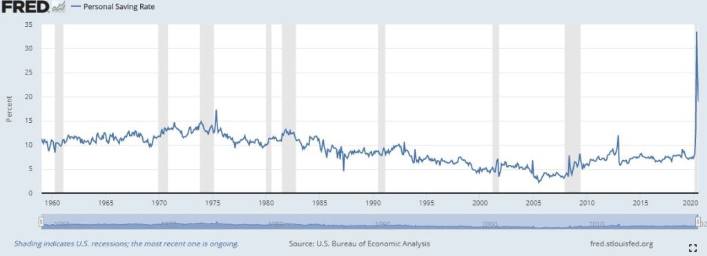 What about inflation? Difficult to see how this massive rise of money supply can produce any meaningful push in inflation given that the majority of that cash is simply being saved/invested in the market rather than consumed.