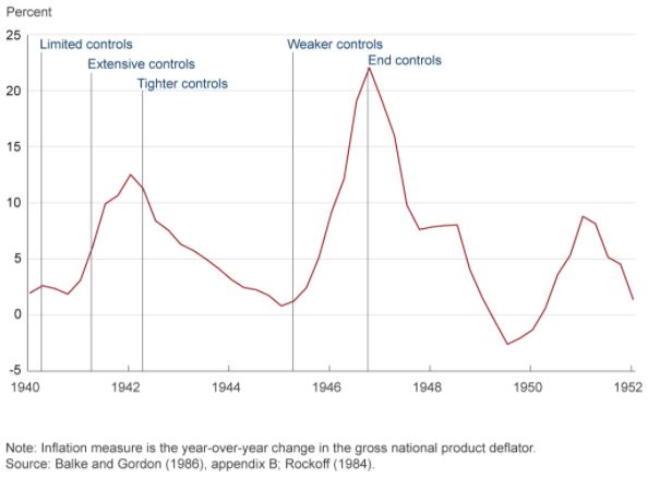 By the time the actual peg went in place, the curve had steepened, especially the 10yr had gone to 2% as inflation really accelerated. Inflation eventually reached a staggering 12.5% in 1942 at which point even more price controls were imposed.