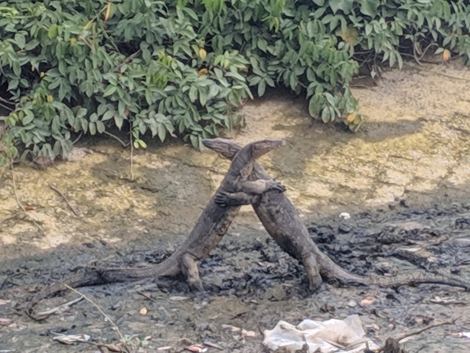 We watched them intently for a full five minutes, our eyes following the action apprehensively while the duo wrestled to and fro. Several times it seemed as if it was the end, as one lizard would lie in the mud, their body still, but then they would rise up again, attacking ferociously.