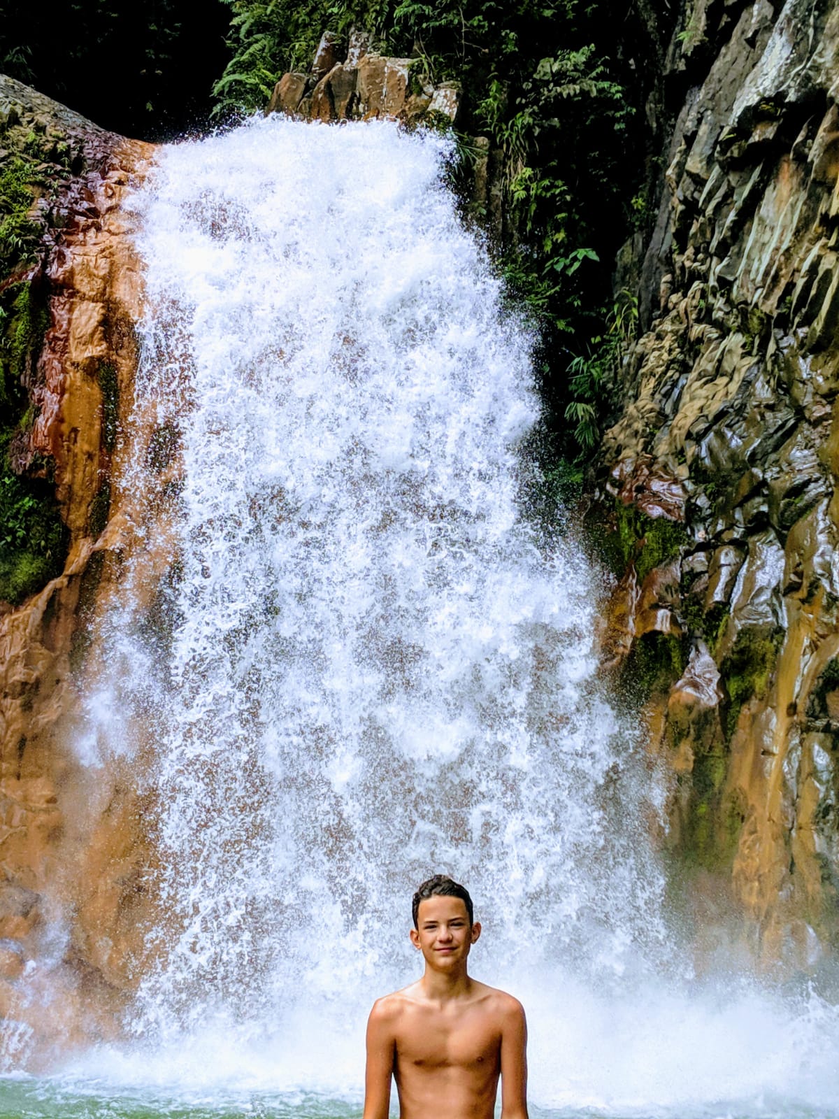 The next waterfall took some time to reach. It was about a half hour drive away from the first and we had to walk up the river. This meant going on top of dodgy rocks, a slip away into the rapid waters. Several times, we almost fell in. Once, my dad dropped our shoes but luckily immediately picked them up before they got washed away.