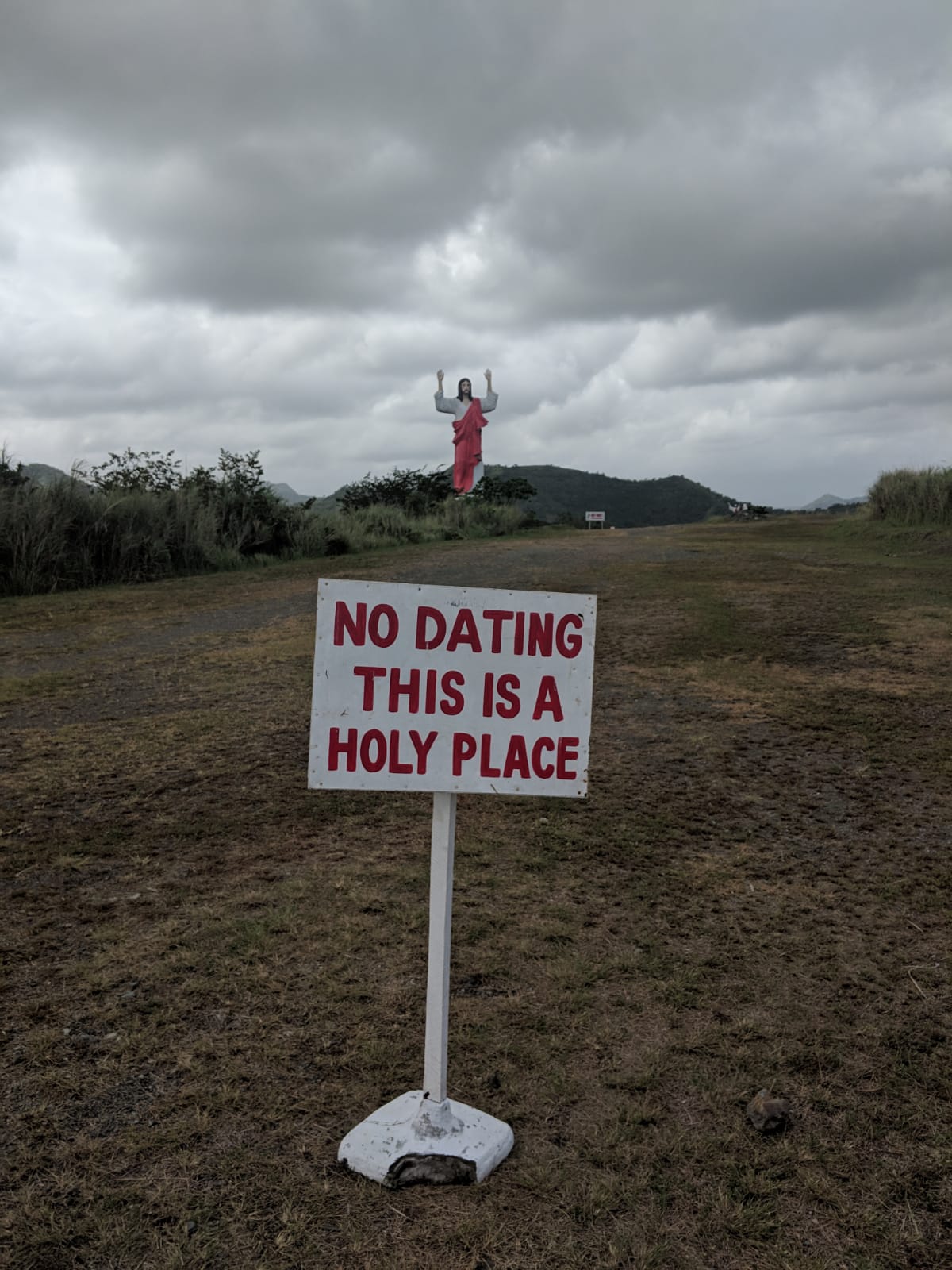 The only big attraction here, apart the food, was a huge statue of Jesus. It was initially planned to have hands out open, to welcome people but after complications in building it, it was changed to hands upright, which looks as if Jesus is surrendering. This, combined with signs, dotted throughout the field, that said “no dating here”, made for what we thought an hilarious sight.