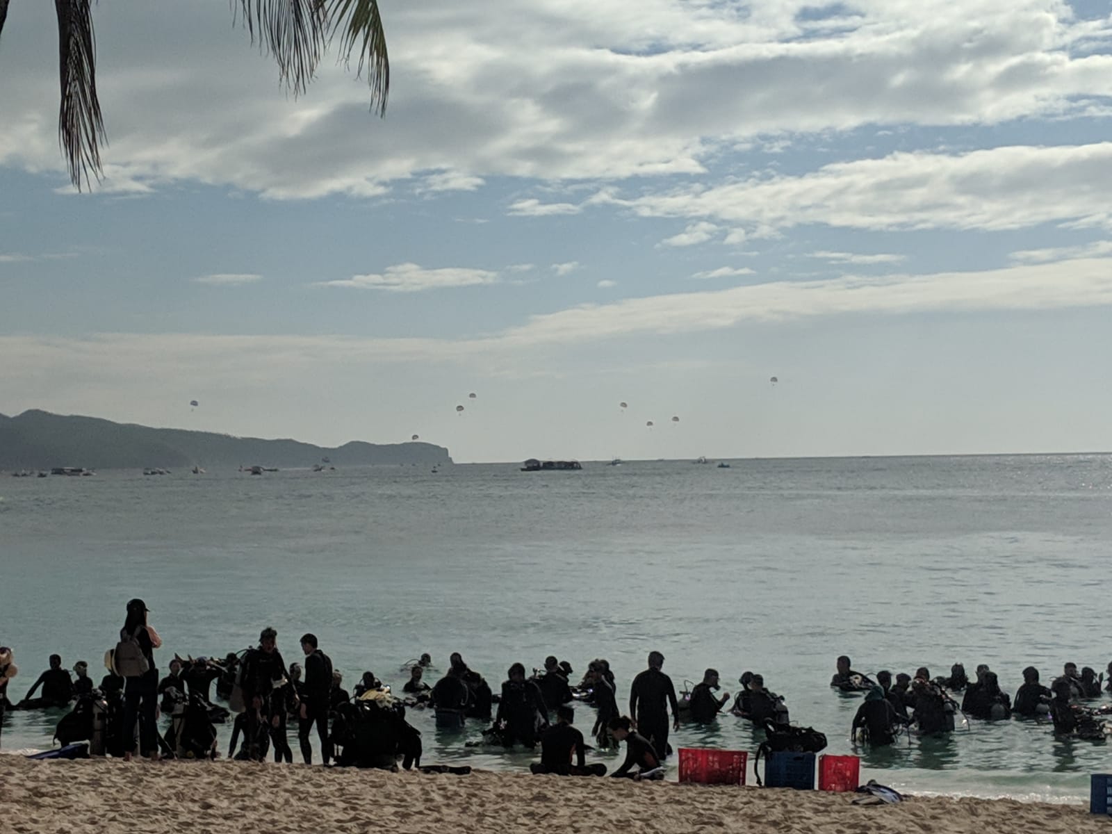 Finally, we couldn’t leave the Phillipines before visiting its hotspot: Boracay Islands! It’s the most famous island of the Phillipines and is absolutely crowded with tourists. I spotted at least 50 divers milling all together in the water.