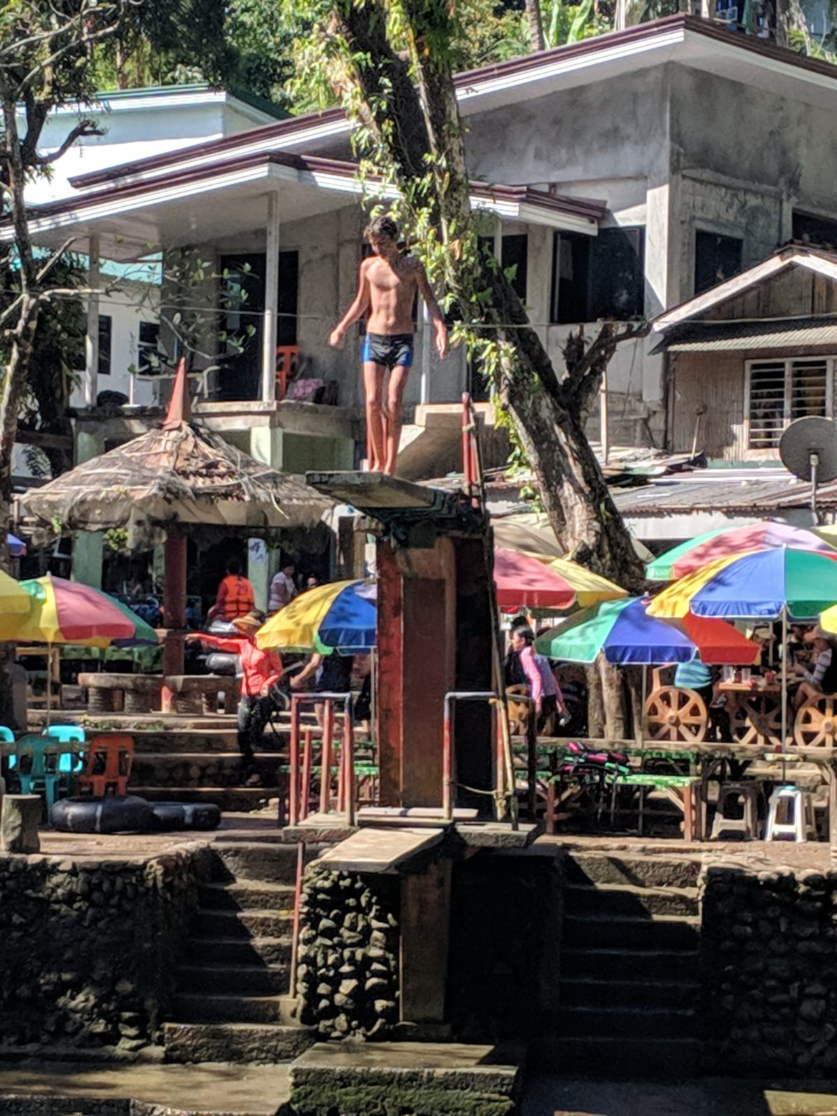 My family did join me in doing something else though: paddling down the spring on a float. At the end of the stream we were treated with a surprise: the staff jumped off the springboard, right in the middle of the floating circle we had formed, landing, with a big splash, scarily close to us. It was fun.